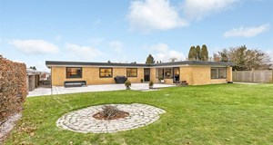 Denne villa ligger på en grund på 1125 kvadratmeter og byder på mange anvendelsesmuligheder udendørs. Ejendommen er prissat til 3.795.000 kr.